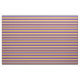 Dieses farbenfrohe Stoffdesign zeichnet sich durch ein Muster aus orangefarbenen, grauen, lila, blauen und blassgoldenen Streifen aus.