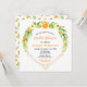 Diese lustige und skurrile Brautdusche lädt mit Aquarellorangen, Gänseblümchen und Blattwerk auf einem geometrischen Rahmen aus Gold ein. Der Text kombiniert handgeschriebene Skript- und Serif-Schriftart für ein stilvolles und modernes Aussehen. Das ist ideal für ein rustikales Brautparty im Sommer.