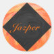 Orangen- und Schwarze Monogramm-Feuersee Runder Aufkleber