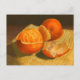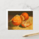 Postkarte mit einem traditionellen Stillleben-Gemälde von Orangen. Kunstwerk: Öl-Pastell. Urheberrecht: Dominic A. White.