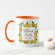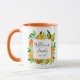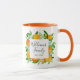 Stilvoll mit dieser botanischen Tasse mit Orangenfrüchten und Blume in einem floralen Aquarellbild. Ein modernes, elegantes Sommergeschenk mit individualisierbaren Kalligrafien-Skripten! Ideal für Hauswärme oder Hochzeiten im Sommer.