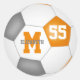 Diese sportlichen, 3 Zoll runden Aufkleber für ein Mädchen oder einen Jungen verfügen über eine einfache Fußball-Grafik mit orangefarbenen, grauen und weißen Tafeln - nach Namen, Monogramm und Jersey-Nummer des Athleten - von katz_d_zynes