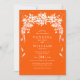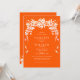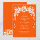 Weiße, blumengeschmückte Garage lebhafte orange Hochzeit im Herbst Einladung. Eine wunderschöne weiße Kaskadengarage schmückt diese Hochzeitseinladung mit goldenen Konfetti.
