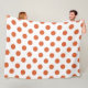 Orangefarbene Polka-Punkte auf weißem Hintergrund.