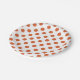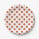 Orangefarbene Polka-Punkte auf weißem Hintergrund.