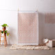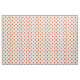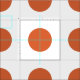 Orangefarbene Polka-Punkte auf weißem Hintergrund.
