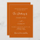Orangefarbener Hintergrund. Personalisieren und fügen Sie Ihre Namen und die Details. Weißer Text. Zurück: verbrannter oranger Hintergrund.