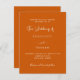 Orangefarbener Hintergrund. Personalisieren und fügen Sie Ihre Namen und die Details. Weißer Text. Zurück: verbrannter oranger Hintergrund.