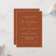 Ein trendiger, orangefarbener, terrakottfarbener Hintergrund. Personalisieren Sie Ihre Namen und Details und fügen Sie diese hinzu. Zurück: Fügen Sie Ihre Hochzeitswebsite url zum QR-Code für Details und/oder UAWG hinzu