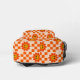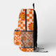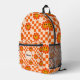 Dies ist individuelle Name personalisierter Rucksack für Mädchen mit niedlich karierten orangefarbenen fröhlichen Lächeln Blume Muster in heiß rosa mit kleinen Quadraten.
