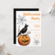 Moderne Halloween-Party-Einladung mit Spinnennetzen an den Ecken des Designs mit "Halloween-Party" in orangefarbenen Buchstaben Typografie mit einem lustigen Blackbird und Jack Lantern auf schwarz-weißem Hintergrund dargestellt. Personalisieren Sie das Halloween-Party in schwarz und orange mit Ihren Party-Details.