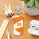 Dieser Volleyball-Schlüsselanhänger zeigt das abstrakt überdimensionierte Bild eines Orange- und Weißvolleyballs an der Vorderseite, auf dem man die Jerseynummer des Athleten anpassen kann - auf der Rückseite steht der Name des Athleten für einen ähnlich überdimensionierten weißen Volleyball - von katz_d_zynes