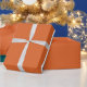 Mit diesem Geschenkpapier in Aqua und Orange mit weißen Akzenten verwöhnen Sie Ihre Geschenke stilvoll.