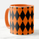 Oranges Schwarzes Harlekin-Diamant-Schachbrettmust Tasse