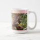 Adorable Baby-Orang-Utans genießen den Vorzug von Borneo. Ein Orang-Utan hat einen schmutzigen Mudpie-Mund, der andere nibbelt auf eine hübsche Blume. Beide Säuglinge sind Waisen, die wir gerettet haben. Es dauert viele Jahre, bis sie in geschützte Gebiete des Regenwaldes freigesetzt werden können. Mit dem Kauf dieser besonderen Tasse können Sie zum Erhalt dieser sanften Menschenaffen beitragen!