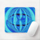 Fantasy abstraktes Design in Blautönen mit einem strahlenden reflektierenden orb Set vor einem wirbelnden Hintergrund. Mousepad mit individualisierbarem Design für Sie, um mit Ihrem eigenen Text, Bildern und Ideen zu personalisieren. Erstellt mit einem Originalfoto und digitalen Techniken von Jess Perry.