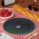 Ein Foto eines Orb Weaver Spiders in der Nacht in seiner Web-Nähe, die hell und farbenfroh in Hutchinson Kansas USA ist. Das ist auf PAPER-TELLERN.