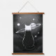 Orbiting Cosmic Cat Wall Art — Minimalist Wandteppich Mit Holzrahmen
