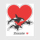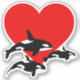 Cooler Orca Killer Wal Aufkleber. Orkanwale schwimmen über einem großen Herz voller Lieben. Ich Liebe Orca Killer Wale. Orca Wal Liebhaber Geschenk.
