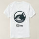 Personalisierter, stilvoller T - Shirt mit einer minimalistischen, modernen runden Abbildung eines Orcas.