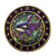 Eine Touch Eleganz und mariner inspiriert Charme verleihen Ihrer Mannhöhle oder Angellodge eine atemberaubende Orca- und Schildkrötenkunst. Das Herzstück ist ein anmutiger Orca, der mit lila, goldenen und blauen Farbmustern verziert ist. Ergänzend zum Orca schwimmt eine wunderschön detaillierte Schildkröte in der Nähe und vervollständigt die ruhige Unterwasserszene. Dieses Meisterwerk ist in einem verzierten Rundrahmen mit goldenen Wirbel, leuchtenden grünen Edelsteinen und himmlischen Akzenten verziert. Seine einzigartige Mischung aus Fantasie und rustikalem Charme macht es zu einer perfekten Dekoration für einen Spielsaal, Mancave oder Lodge. Dieses Kunstwerk ist so konzipiert, dass es Bewunderung inspiriere und Gespräche auslöst. Es eignet sich hervorragend für ein Dartboard oder als eigenständiges Statement-Stück. Die lebhaften Farben und die faszinierenden Details verwandeln jeden Raum in einen kreativen Hafen. Wenn man Meereslebewesen, Natur oder einfach nur eine einzigartige Dekoration Liebe, ist dieses Stück ein Muss. Mit dieser einzigartigen Orca- und Schildkrötenmauerkunst heben Sie Ihren Erholungsraum noch heute auf!