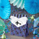 Vielen Dank an Ihre Gäste mit Leckereien, die in dieser kleinen, süßen Geschmacksbox mit einem schwarz-weißen Orca und tiefen, reichen lila Farbtönen verpackt sind. Die Box ist mit einem lila Hintergrund auf der unteren Hälfte der Schachtel versehen, in der viele Orcas zwischen blauen Blasen schwimmen. Die Oberseite der Kiste hat eine lila, blaue, schwarz-weiße, senkrechte Streifen mit einem "Danke, dass du mit uns gefeiert hast"-Gefühl, das über einem niedlichen Cartoon-Wal gebogen ist.