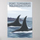 Orca Whales #1 - Port Townsend, Washington - Vintage Travel Poster wurde 2007 gegründet. Dieses Bild zeigt Szenen aus Port Townsend, WA.