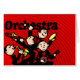 Roter Hintergrund mit dünnen schwarzen Konturen der konzentrischen Kreise hinter einer Gruppe Musiker"Orchester" von spielen und vom Wort oben.