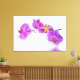 Hellrosa Orchideenblüten mit Seestern auf einem Stapel weißer Handtücher.