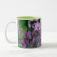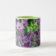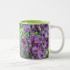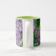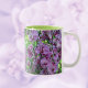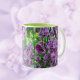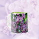 Diese Becher und Tasse zeichnen sich durch ein Bild von Orchideen und üppig grünen Weinreben aus, die sich in üppige, lavender-lila Blüten hinunterziehen. Die Tasse wird mit rosa Innenausstattung gezeigt, aber es stehen auch andere Optionen zur Verfügung, inklusive einer Innenfarbe.