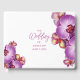 Moderne Orchideen bieten einen zauberhaften Rahmen für dieses BlumenGästebuch. Ideal für warmes Wetter. Nutzen Sie die Möglichkeit, die Themen der Blumenhochzeit, einschließlich tropischer Themen, zu ergänzen. Fügen Sie einfach die Namen des Ehepaares und das Datum der Hochzeitszeremonie vor und zurück. Die Seite hat auch Platz für die Namen der Hochzeitsväter. Verwenden Sie die Vorlage, um Ihr eigenes modernes orchid Hochzeitsgast-Buch zu erstellen.