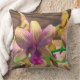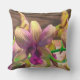 Die Orchideen blühen wieder im Garten, im Originalfoto von ZoeSPEAK auf diesem 20" Kissen Throw. Die Blume, die aus einem sich drehenden grünen Stamm hervorgehen, haben lila Zentren, die sich an den Blätterspitzen in Gelb vermischen. Der natürliche Holzboden Set den skulpturalen Formen und Farben.