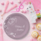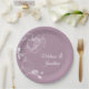 Elegante Hochzeitspapier-Teller mit einer schönen und zarten Orchideenreihe, die auf einer Seite Design zeichne, über einen eleganten, romantischen, staubigen lila Hintergrund. Bearbeiten Sie die Vorlagenfelder einfach, um die Namen von Braut und Bräutigam in einem klassischen weißen Skript hinzuzufügen. Schauen Sie sich die passende Kollektion "Delikate Orchideen - Lila Hochzeitssuite" an, um sich alle Dinge anzuschauen, die sich mit der Arbeit abstimmen. Für weitere Personalisierungen oder Sonderanfertigungen, kontaktieren Sie mich bitte unter acherryonthecake@hotmail.com (bitte 1-2 Arbeitstage).
