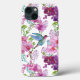 Ein helles und fröhliches iPhone 13 Fall Gemustert in rosa und Lila Orchideen mit einem Zentrum Hummingbird