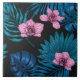 Orchideen und Blätter aus Palmen, rosa und blau au Fliese