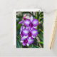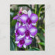 Foto von wunderschönen weißen und lila Orchideen, gedruckt auf einer Postkarte.