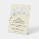 Modern memorial funeral tabletop pedestal sign features white orchids on a pale yellow background and directions to guests on signing the guest book. MATCHING items in our collection.