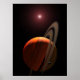 Das Konzept eines Gasriesen Planeten, der einen roten Zwerg-K-Stern umkreist, zeigt, dass ein Planet nicht direkt fotografiert wurde, aber seine Präsenz wurde 2003 durch Mikrolinsenbeobachtungen eines Feldsterns in unserer Galaxie entdeckt. Gravitationsmikrolinsenierung geschieht, wenn ein Vordergrundstern das Licht eines Hintergrundsterns verstärkt, der sich momentan an ihm orientiert. Beobachtungen des Hubble-Weltraumteleskops im Jahr 2005 trennten das Licht des leicht ausgeglichenen Vordergrundsterns vom Hintergrundstern. Dies ermöglichte es, den Gaststar als roten Zwergstern zu identifizieren, der 19.000 Lichtjahre entfernt liegt. Die Hubble-Beobachtungen erlauben es, die Masse des Planeten auf 2,6 Jupiter-Massen zu schätzen. Die Charakteristika des Linseneignisses zeigen, dass sich der Planet in einer Jupiter-großen Umlaufbahn um seinen roten Mutterstar befindet. Ringe und Mond um den Gasriesen sind hypothetisch, aber angesichts der Natur der Gasriesen-Familie in unserem Sonnensystem plausibel. Bildkredit: NASA, ESA und G. Bacon (STScI)