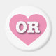 Dieser Magnet verfügt über ein rosa Herz, das die fett-, weiß-, Großbuchstaben OR, die offizielle Abkürzung für Oregon, den Biber-Staat, enthält.