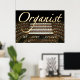 Mit diesem Poster an der Wand wird niemand daran zweifeln, was Sie anbieten! Die Wörter erscheinen oben auf einer Orgelkonsole im Cverfügle-Coll-Stil und zeigen die Handbücher Haltepunkte und Kolben. Eine atemberaubende Werbeaktion für Ihre Arbeit als Organist!