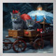 Oriental Blue Cat Snowy Sleigh Weihnachtsdekor Poster