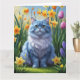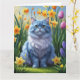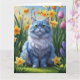 Oriental Blue Cat Spring Flowers Malerei Karte