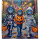 Adorable orientalisch blaue Katzen, die in verspielten Halloweenkostümen gekleidet sind, tragen Kürbiseimer, während sie unter dem mondbeleuchteten Himmel tricksen oder behandeln. Dieses festliche Design hebt den schlanken Körper der Rasse, die großen Ohren und den auffallenden blauen Mantel hervor, was die sprichwörtliche, aber lustige Atmosphäre Halloween-Abends perfekt einfängt. Ein stilvolles und charmantes Fest für Katzenliebhaber und Halloween-Fans gleichermaßen.