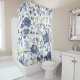 Blauer Duschvorhang aus orientalischem Blumen und Vogelgeflecht.