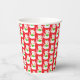 Dieses phantastische Set gemusterter chinesischer New Year-Papiertassen zeigt ein grafisches Design einer glücklich orientalisch-weiße schwenkenden Katze. Die Katze hat schöne goldene Augen und trägt eine goldene Medaille auf dem Halsband. Die Katze hat rosa Ohren und Flüstern. Dieses niedliche kleine Kätzchen hält einen goldenen Jadestein mit grünem Jade und eine Nachricht in goldenem Text, die "Viel Glück" sagt.