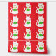 Diese phantastische gemusterte Tapete zeigt ein grafisches Design einer glücklich orientalisch-weißen schwingenden Katze. Die Katze hat schöne goldene Augen und trägt eine goldene Medaille auf dem Halsband. Die Katze hat rosa Ohren und Flüstern. Dieses niedliche kleine Kätzchen hält einen goldenen Jadestein mit grünem Jade und eine Nachricht in goldenem Text, die "Viel Glück" sagt.