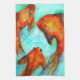 mit originellem Design aus Aquarellmalerei von Sacha Grossel aus drei orangen orientalischen Goldfischen oder Koi schwimmen in einem ruhigen aquafarbenen Wasser. Dieses friedliche Design, das von japanischer und asiatischer Kunst für viel Glück Feng Shui Water Chi inspiriert wurde, wird durch sein helles und lebendiges Design einen bleibenden Eindruck verlassen