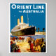 Ozeanwerbeplakat für Orient Line's Verbindungen nach Australien im frühen 20. Jahrhundert, mit einem Transit des Suezkanals.