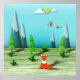 Origami Forest Szene mit Fox Mountains und Vögeln Poster