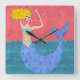 Original Abstrakte Mermaid-Kunst Quadratische Wanduhr
